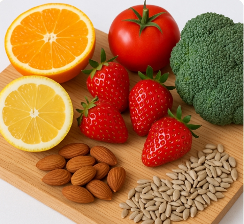 • 항산화 식품: 토마토(라이코펜), 브로콜리, 시금치는 자외선 손상을 줄여줘요.